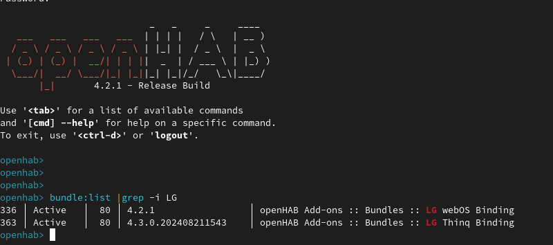 325 │ Active │ 80 │ 4.3.0.202408211143 │ org.openhab.binding.lgthinq