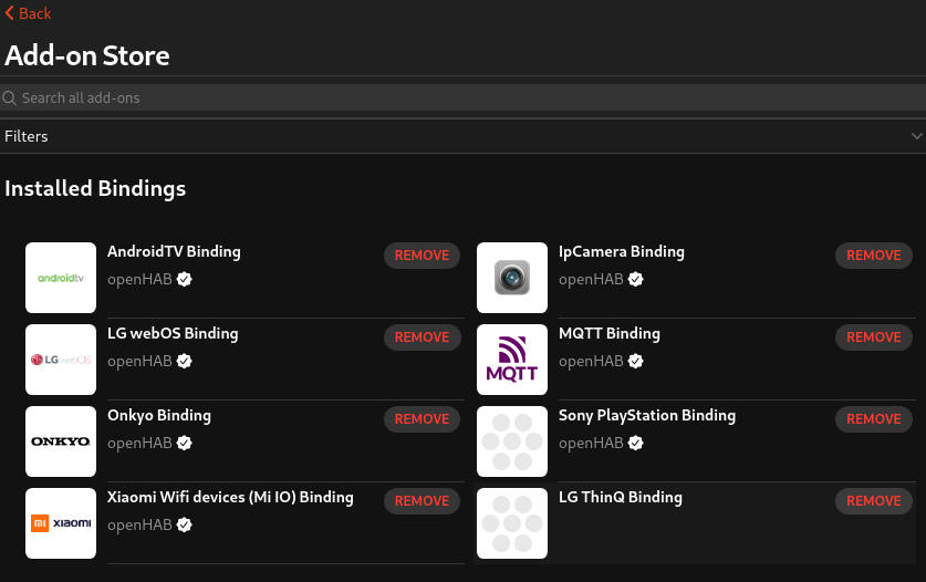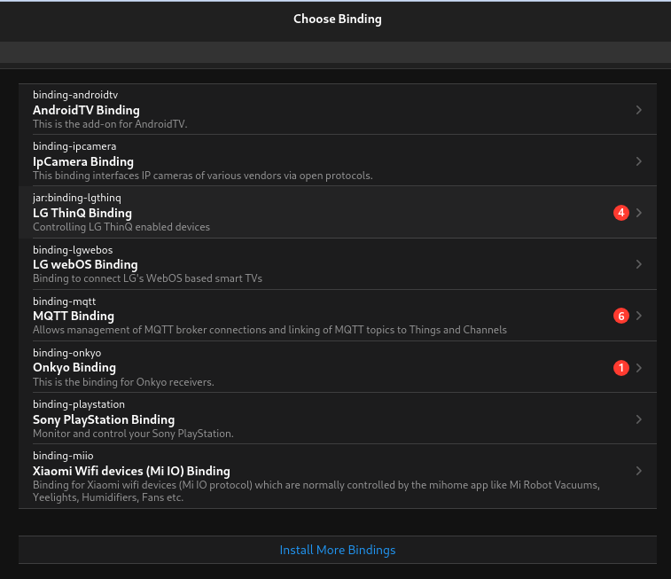 - Confirm that the binding is not recognized by the OH UI in AddOns Store and not available to be manually added in the Settings->Things