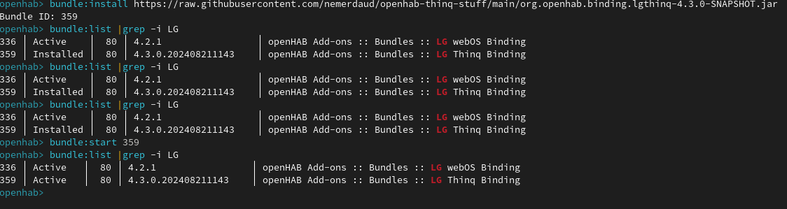bundle:install https://github.com/nemerdaud/openhab-thinq-stuff/blob/main/org.openhab.binding.lgthinq-4.3.0-SNAPSHOT.jar