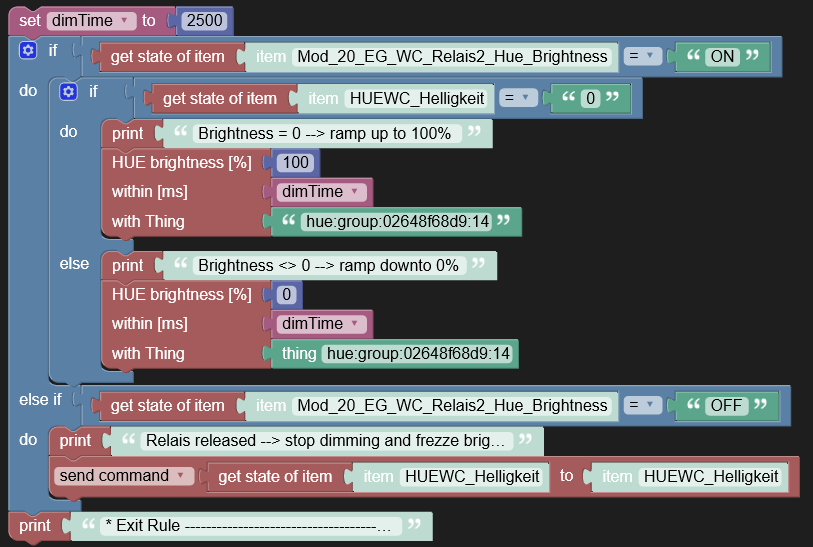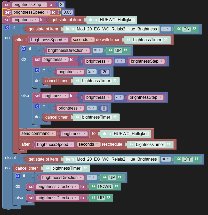 The first problem is that the mentioned links to the Blockly playground (Blockly Demo: Blockly Developer Tools, Advanced Blockly Playground) include only basic Blockly toolboxes, but what I need for me Dimmer needs timers, things and all taht funny stuff we’ve got in openhab.