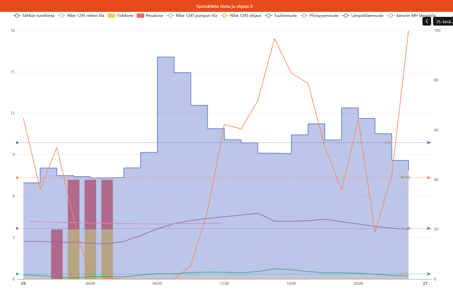 The control value time series data is saved to the influxdb directly with the Influx REST API (called from the script actions of our rules) , bypasing the openhab persistence layers completely. This is because openHab doesn’t currently support saving timeseries data with future timestamps.