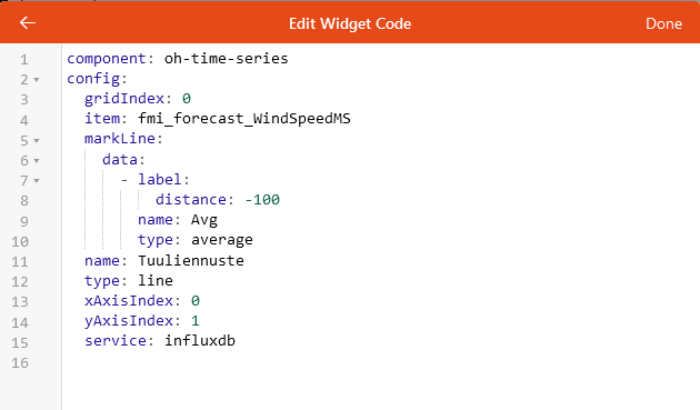To make the data available for charting, the kludgy workaround is to create an Item with exactly the same name as what we used when we saved the data to the database. This way we Charts will read the data from the database just like it does for “normal” items whose data openHab had saved via normal persistence.