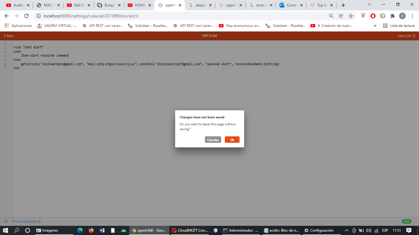 Creo mi Script, guardo (control S), doy retorno, sale mensaje como si no hubiese guardado