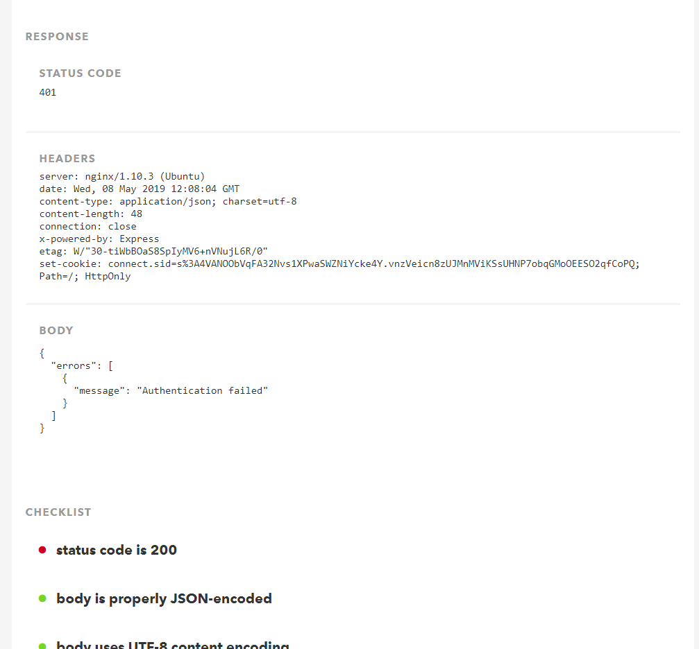 Auth failed … are you sure that the Auth test pass correctly now ?