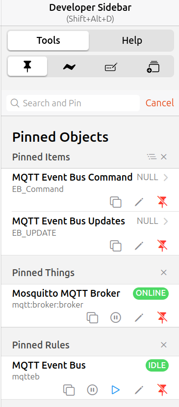 The Developer Sidebar is great for this and it works even better if you use meaningful UIDs because the search looks at uids as well as names, labels, etc. So you could bring up the sidebar (alt-shift-d) search for “kitchen” and your Thing will show up. You can pin it and anything else you need that you are working with and then there’s a nice “copy” icon to get the ID on the clipboard.