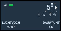 See the temperature, min and max temperature, trend, humidity, dewpoint, RF status and battery.