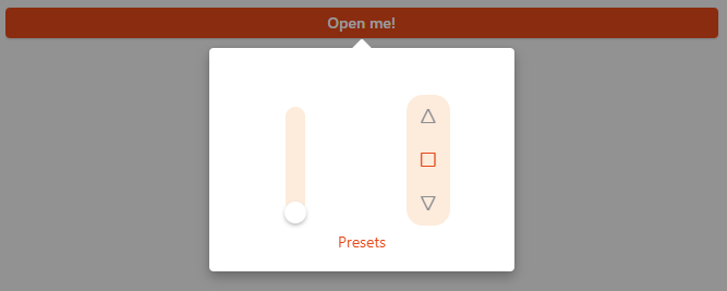 I’m not sure if this is really an issue but I had the impression that the latter solution is not ideal if you want to use this widget more than once on the same page. At least I had some strange behaviour when I tried this before but I couldn’t really pinpoint where it was coming from. In fact, I think popovers should be defined only once in the DOM (by giving it a unique class name) but there seems to be no way to dynamically assign a class name through the yaml.