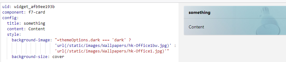 Ah okay, didn’t know that you’d like to change the page background with this. And yes, this isn’t possible right now due to the fact that the page can’t handle the variable informations you’ll get with = afaik. This would be a feature request in the openhab-webui repo.