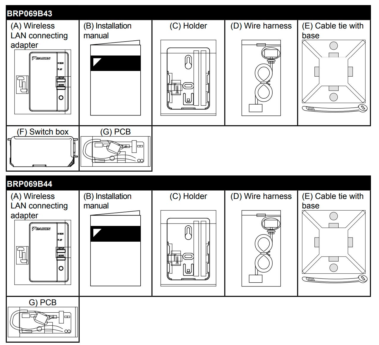 BRP069B41 is the wi-fi adapter itself. From 42 to 45 are different kits and therefore all include BRP069B41 in it. Some just have shorter cable for installation in the indoor unit, some have additional PCB for retrofitting small (20-25) units that don’t have S21 on their main board. In general all are BRP069B41, some have additional stuff included intended for specific models installation.