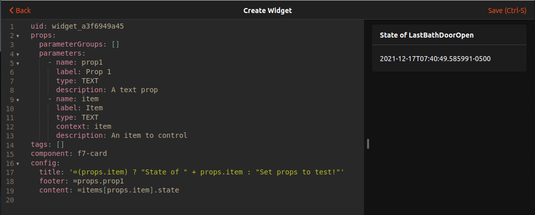 The screen shot in Post 11 showed the newly created widget. (Sorry Rich I cut off the yaml but I didnāt think it mattered because it was a newly created widget with the same yaml as any other newly created widget)