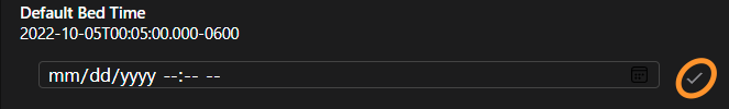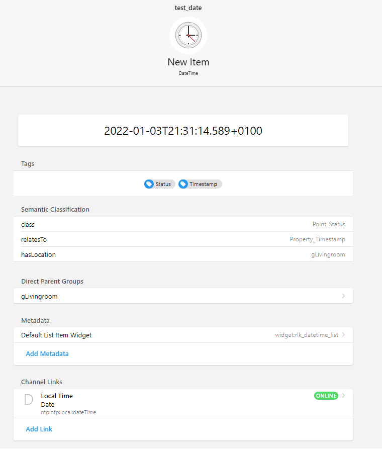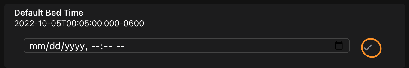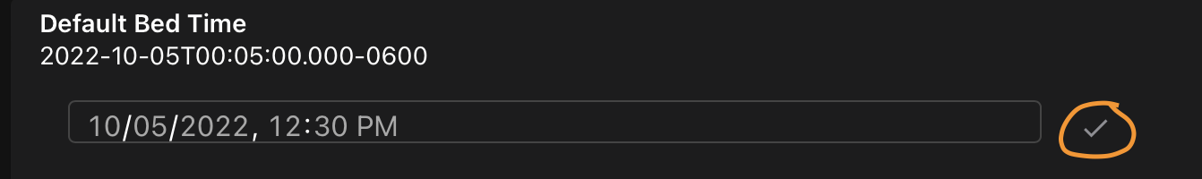A List Item input widget to select and enter a date time to populate a DateTime Item. The date and time can be entered through text or click the calendar icon and open a selector. The date and time will not be sent to the Item until the check icon is clicked. The current state of the Item is shown under the label.