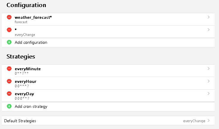 This really surprised me as the default strategies configuration still is everyChange and yet, I had to add another configuration that applies to ‘*’ with everyChange as its strategy.