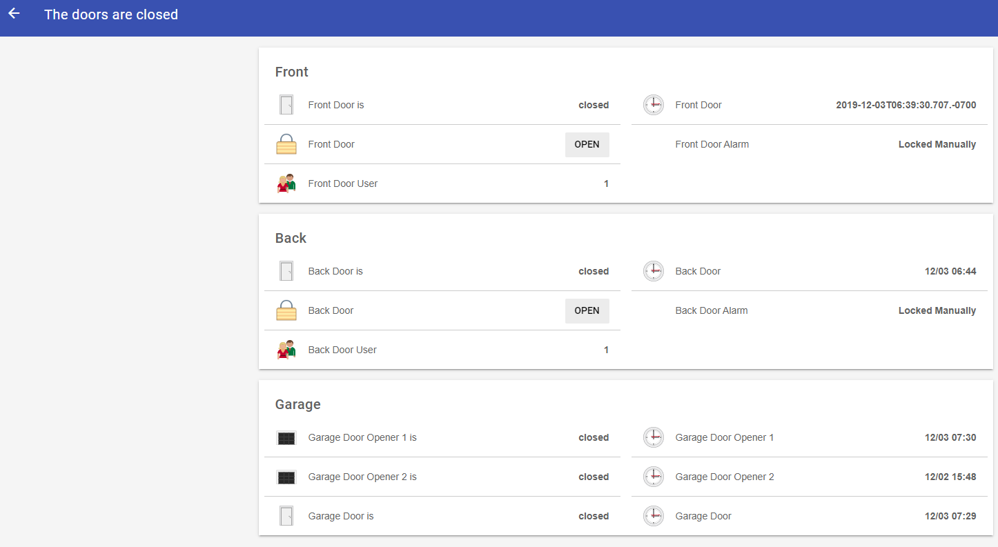 As for the alerting, I have written an alerted approach (API seems too strong a term) using metadata. Actually I have two approaches, depending on what I’m alerting. Here is one of my door Items: