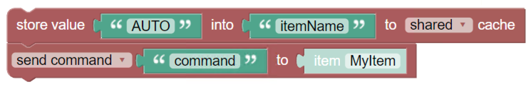 We will use the cache to store the deadman’s switch. Sending a command to an Item from a rule will be as follows: