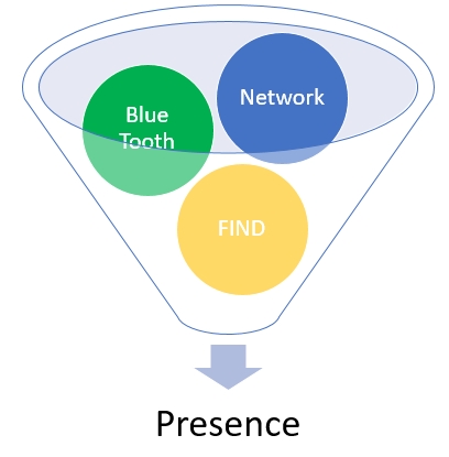 In this example there are two people who are detected by the positions of their phone. Each phone has multiple ways to detect its presence. The specific bindings/sensors used is irrelevant for this approach so long as the state can be represented as a Switch.