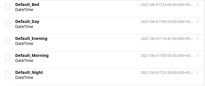 Item Default_Morning should start at 6 AM and has a value of 2021-05-21T06:00:00.000+00:00