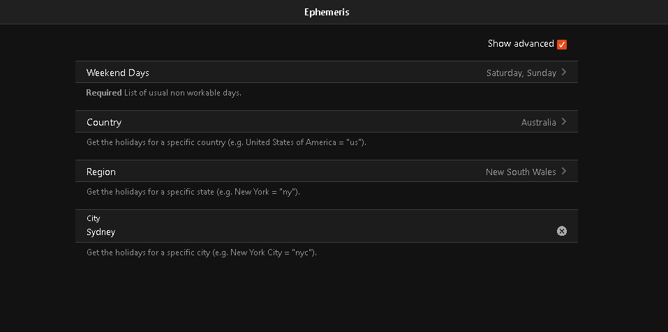 DateTime Weekend_Day (TimesOfDay) { channel="astro:sun:ihp:set#start", etod="DAY"[type="weekend"] }