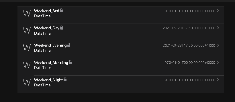 This means either the rule didn’t run or it didn’t trigger to run last night a little after midnight. The rule looks at the date for all the Items and if the date is for yesterday it advances the date to today. This also means that your attempts to initialize the Item were not successful. I’m pretty sure you don’t want BED, EVENING, and MORNING to happen a the same time.