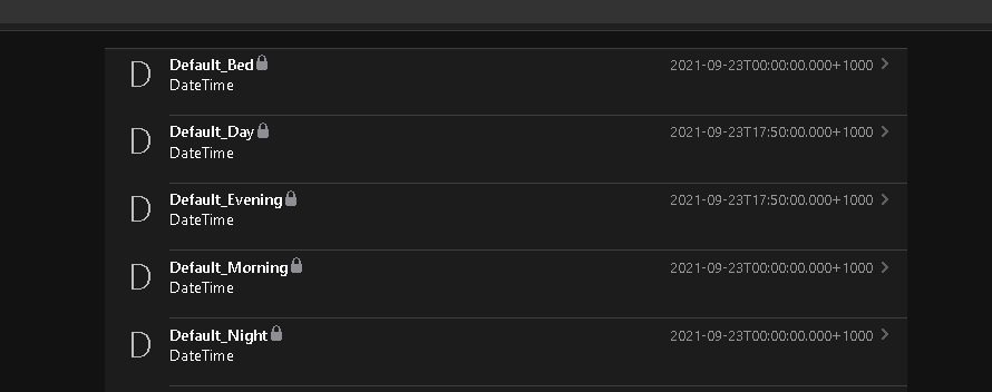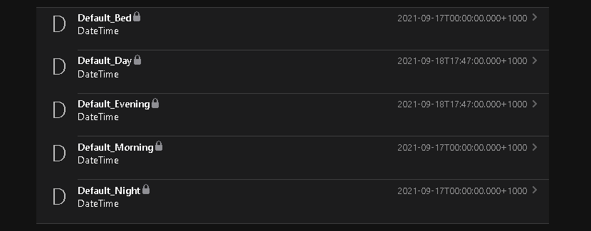 DateTime Default_Night (TimesOfDay) { etod="NIGHT"[type="default"] }