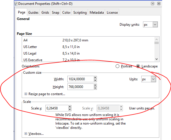 Create a new document, go to File > Document properties and change to an appropriate size (for instance 1024x768). You can also create the document with File > New from template⦠and use the Desktop template with your preferred size.
