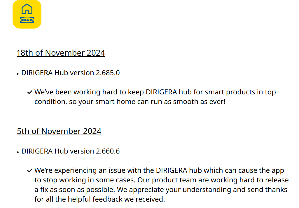 This is also fitting to IKEA Release Notes from Nov 5th: