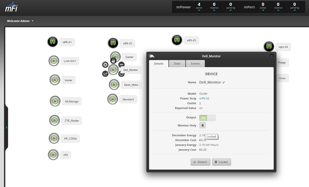 I also like that if I lock one of the outlets in the mfi controller suite (put it in monitoring mode only), I cannot switch it off from OH2 (this works as I expected)