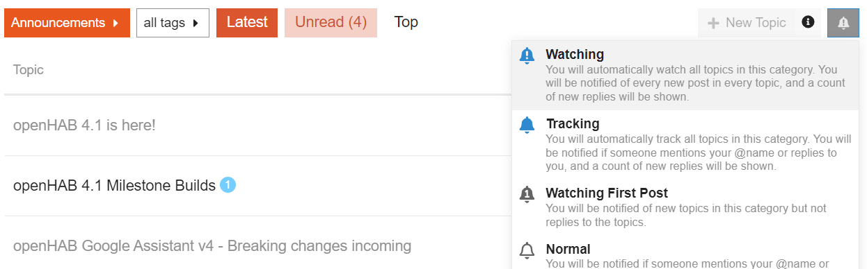 Yeah, I think that’s a great idea. I don’t see a “subscribe” option. Am I correct in thinking that you’re setting the Announcements category to “Watching”…