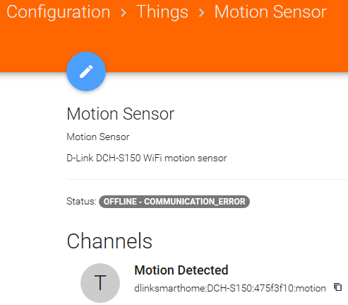 Channel "dlinksmarthome:DCH-S150:475f3f10:motion" triggered
