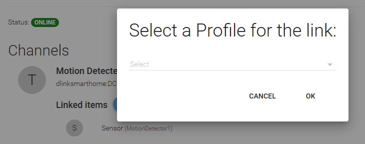 Next step is to add to openhab (version 2.4.0-1). Then installed D-Link binding. Binding could not discover sensot automatically so had to add it manually, correct IP address and Pin code from the box.