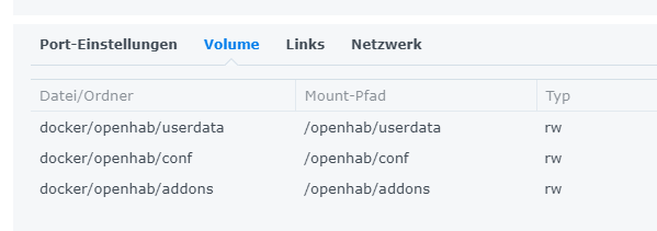I added a mount as in the install manual link to /volume1/docker/openhab/conf