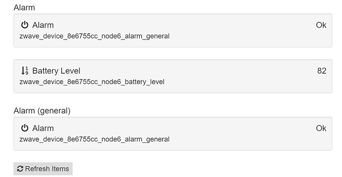 So in your above setup, you need to concentrate on the “Binary Sensor”, create an item for that channel, display it on your sitemap and make sure association group Lifeline is set to your controller and it should work.