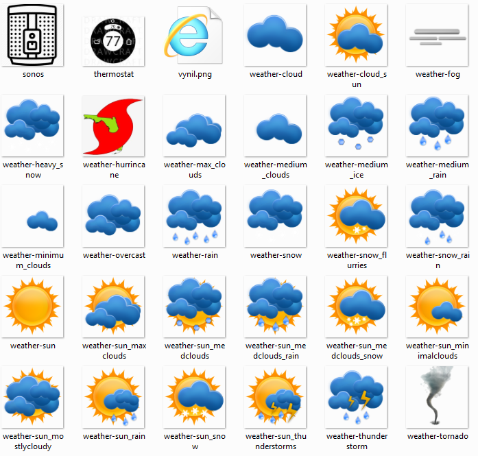 I am trying to use dynamic icons for my weather display. I have imported the icons in .svg, located in the classic icons folder.