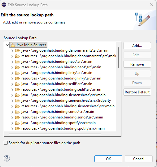 But I’ve find that removing existing entries, and adding Working set, Java Main Sources it’s far sufficient for almost most cases. And with that configuration, debugging is working quite instantaneous, no more freeze on displaying backtrace or in the Expressions window when browsing variables !