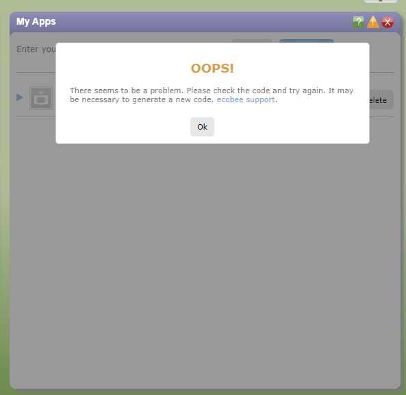 I’m running 3.0.0-SNAPSHOT - Build #2039 which has the new api changes and I’m getting errors when trying to enter the pin in My Apps on the ecobee website. They pin is in the format ‘XXXX-YYYY’: