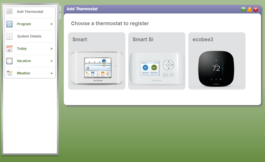 In the portal go to the “Add Thermostat” and pick “ecobee 3” (image is above if needed)