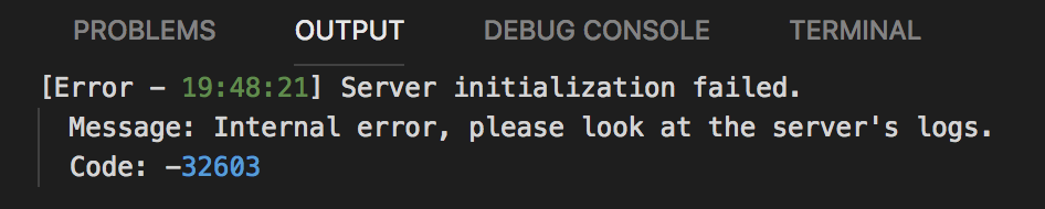 Message: Internal error, please look at the server’s logs.
