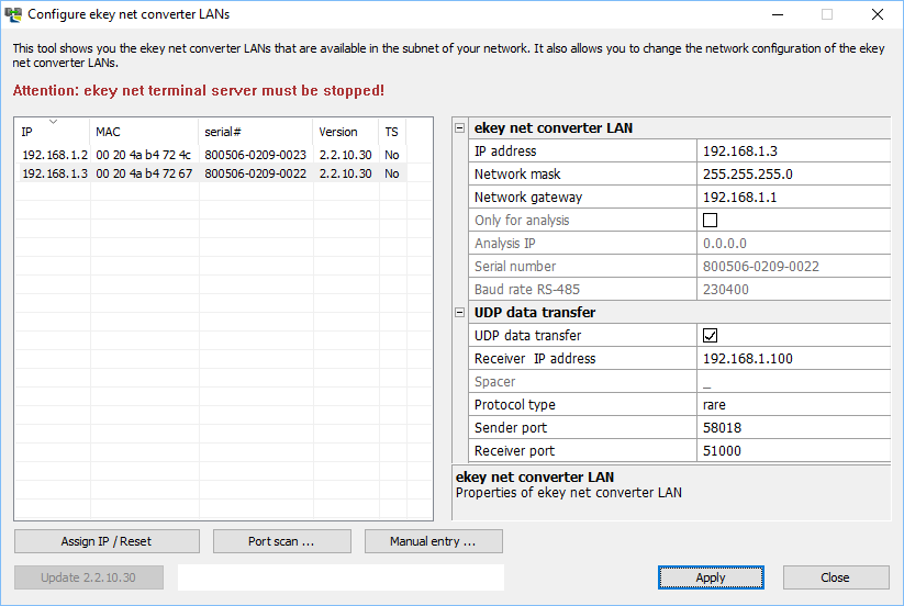 // if CV LAN and ekey.cfg is set to "HOME or MULTI":