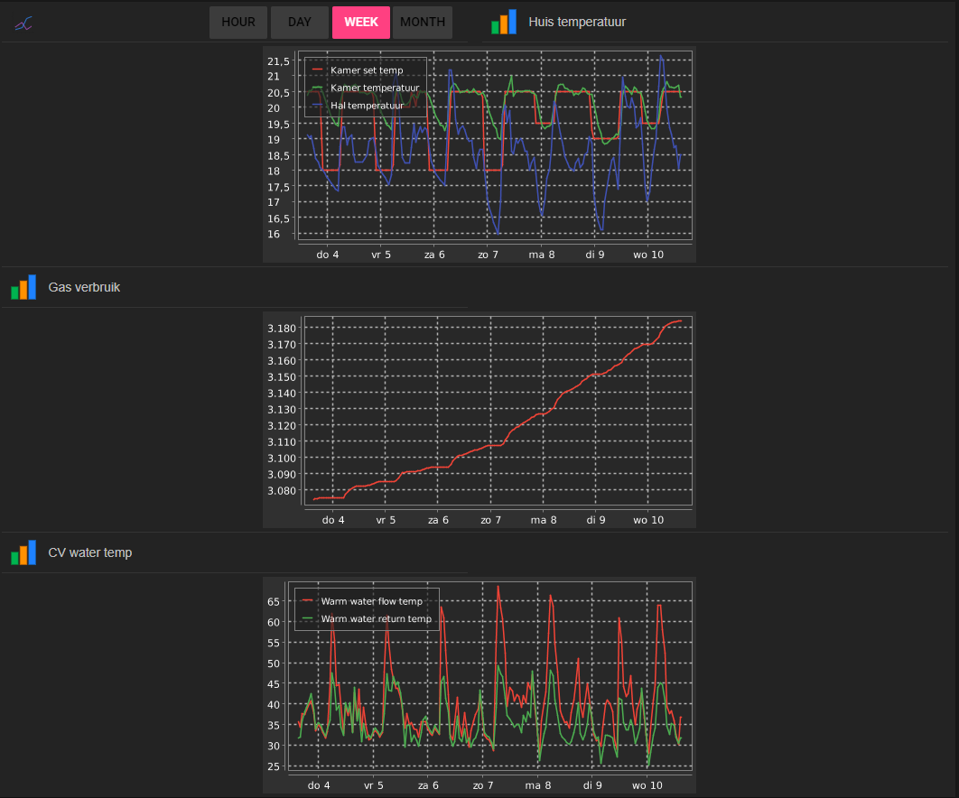 - Read and show boiler metrics (warm water, heating, shower)