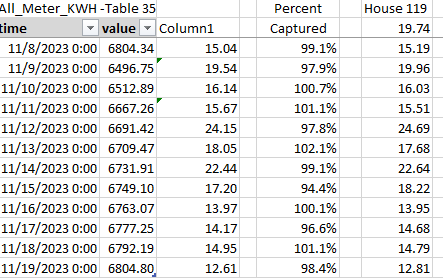 Another thought; I pretty much have the house monitored (95+% of the total). I collect a daily KWH at midnight using mysql/jdbc and then periodically upload the table values into Excel and have almost 2 years of daily data. Could do charts, but mostly do calculations. Occasionally have to use MySQL workbench to correct errant readings.