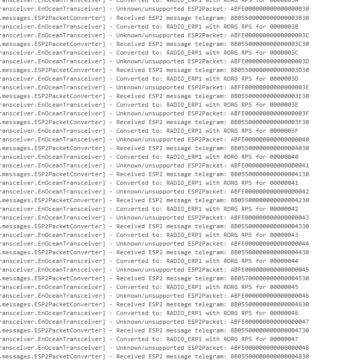 2020-05-24 13:48:41.750 [DEBUG] [nternal.messages.ESP2PacketConverter] - Received ESP2 radio telegram: 0B0500000000FEF434AE20