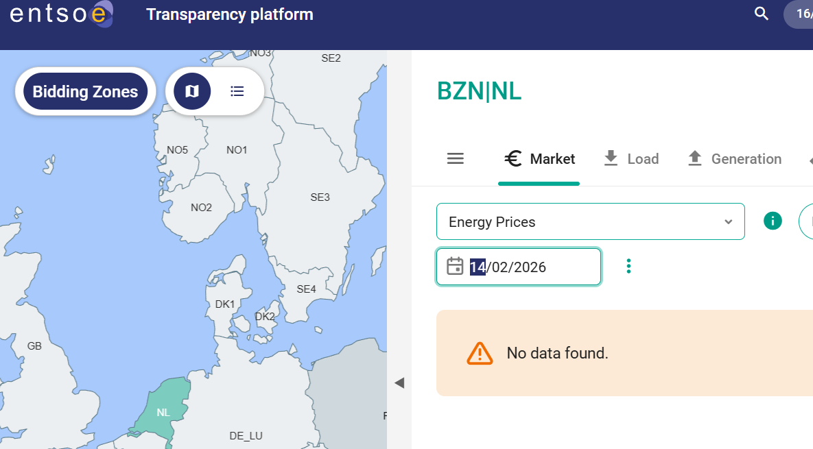 I see the same issue. Last day with prices is Friday Feb 13th. I’ve written to entsoe support team if this is a known problem.