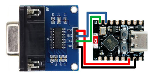 Connect MAX3232’s TX and RX with two free GPIO for UART connection, connect 3V3 from ESP32 to MAX3232 VCC, and it all fits in a machtbox sized housing, like this: