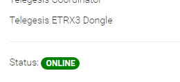2018-06-13 08:40:20.017 [hingStatusInfoChangedEvent] - ‘zigbee:coordinator_telegesis:04000A33’ changed from OFFLINE: Failed to startup ZigBee transport layer to UNKNOWN