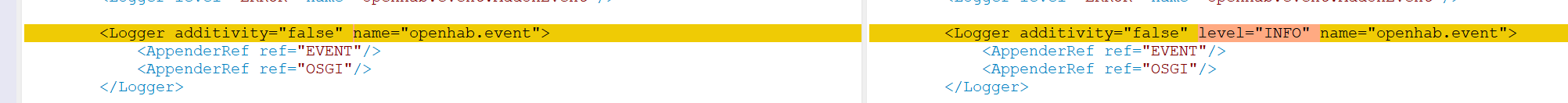 <Logger additivity="false" level="DEBUG" name="openhab.event">