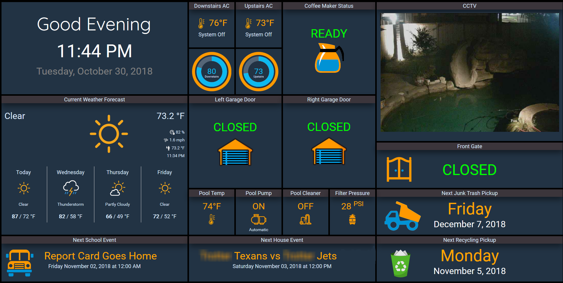 This content is displayed on a 32" display which hangs over our door to the garage - near the kitchen. With one quick look we can make sure we are on top of everything.