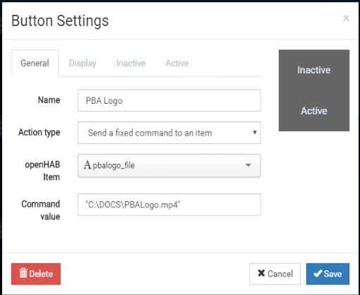 Thing exec:command:pbalogo [ comand=“C:\PBAplay.bat %1”, interval=0 , autorun=true ]