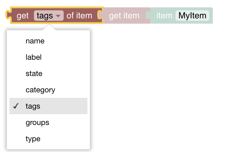 I’m probably going to simplify this configuration but I guess it’s a good example. I could then create very generic Blockly rules that take the meta data as input for specific actions.