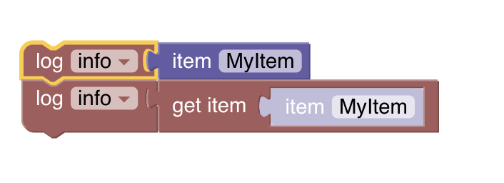 Things: What the difference between the purple MyItem and the red get item item MyItem? Is this the Items category?