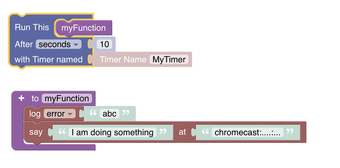 Timers: I like the Timers blocks. They are very intuitive looking. Does the “Timer Name” produce a persisted variable? If not it should.