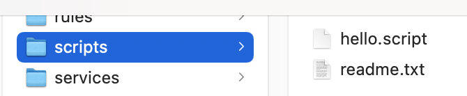 and the script name “helloWorld” is actually called. The code of the script looks like